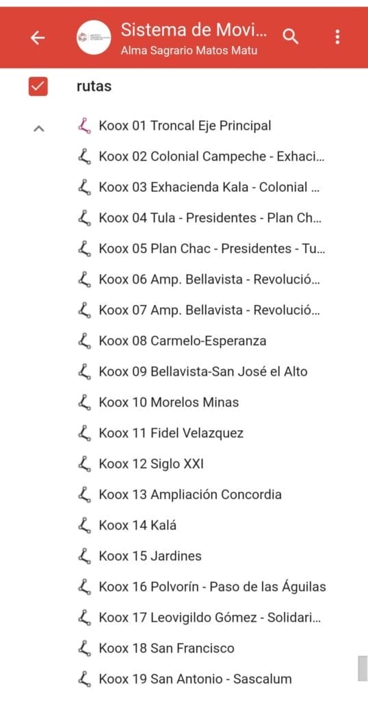 Para consultar los mapas y recorridos de las rutas Ko’oX, así como los puntos de conexión con la red troncal, los usuarios pueden acceder al siguiente link, donde se detalla cada trayecto y sus horarios de operación. O consultar los avisos en esta página.