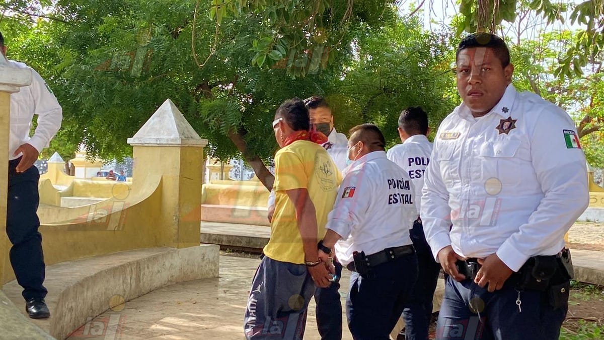 El intento de robo fue reportado al número de emergencias lo que provocó un operativo de búsqueda por agentes estatales y turísticos pero al poco tiempo visualizaron al delincuente escondido debajo de una banca en la alameda y quien fue identificado como el “Champotón”.