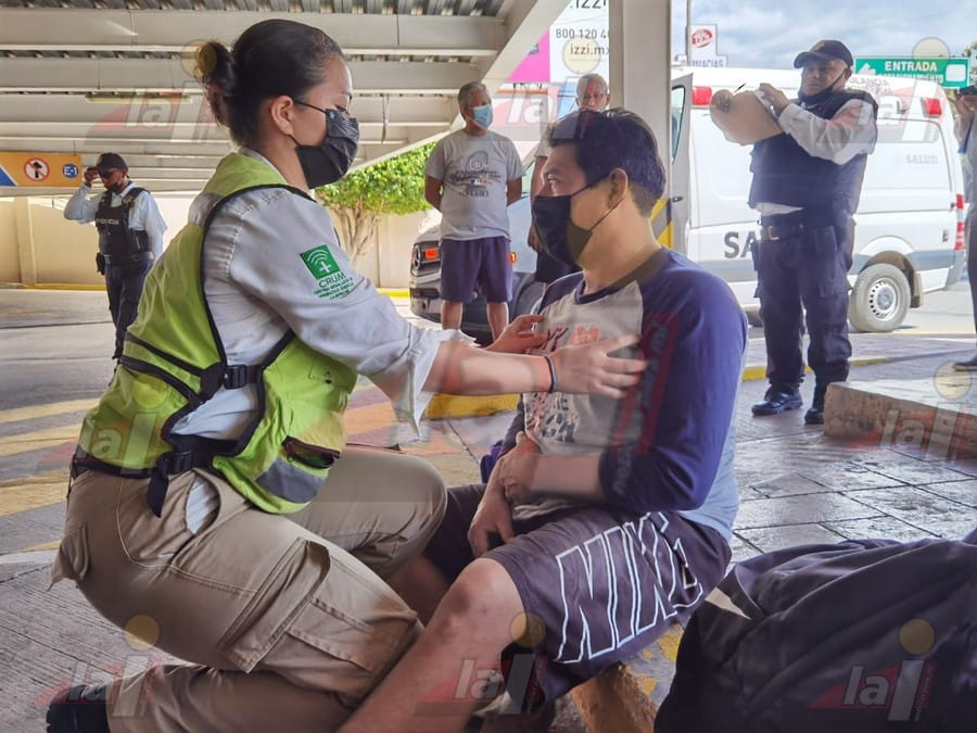 Oficiales escucharon la versión de los involucrados solicitando el apoyo de una ambulancia y presentándose paramédicos del Servicio de Atención Médica de Urgencias a bordo de la unidad 180, quiénes le brindaron los primeros auxilios ya que presentaba posible esguince en el hombro izquierdo, dialogando al final con el presunto responsable llegando así a un arreglo.
