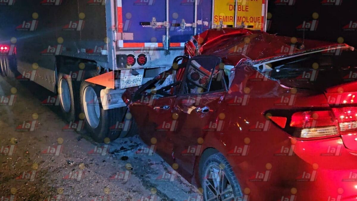 Hecelchakán.- Un hombre perdió la vida de forma inmediata durante la madrugada de este martes, luego de que el vehículo que conducía se estrellara violentamente contra un tráiler estacionado sobre la carretera federal Campeche–Mérida, a la altura del kilómetro 53, cerca de la Villa de Pomuch, en Hecelchakán.