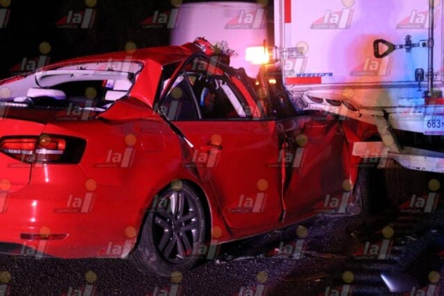 Los hechos se reportaron alrededor de la 1:25 a.m. cuando un vehículo compacto, con placas HRG-710-D del estado de Hidalgo, impactó de lleno contra la parte trasera de una camioneta de carga roja con placas 683AU1 de México.