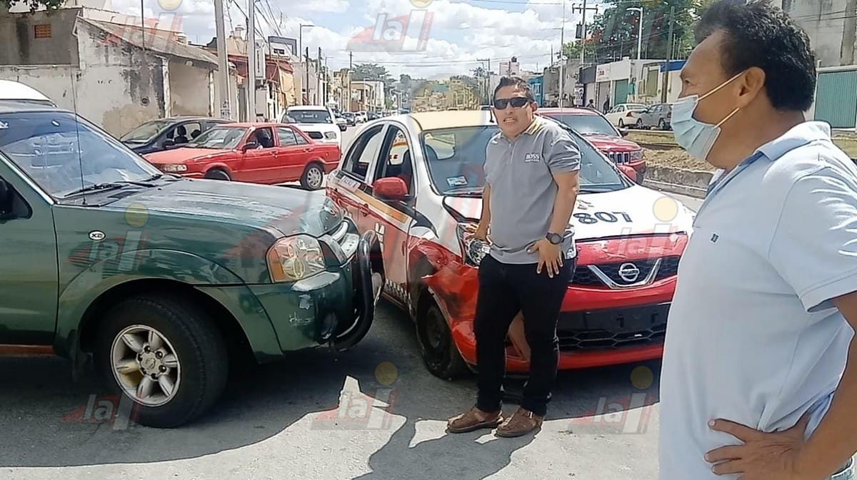 CAMPECHE- Daños menores fue el saldo de un hecho vial ocurrido en el barrio de San José cuando una camioneta chocó contra un taxi, sin embargo los conductores lejos de tranquilizarse empezaron a pelear siendo separados por ciudadanos quienes dieron a su vez parte al número de emergencias.