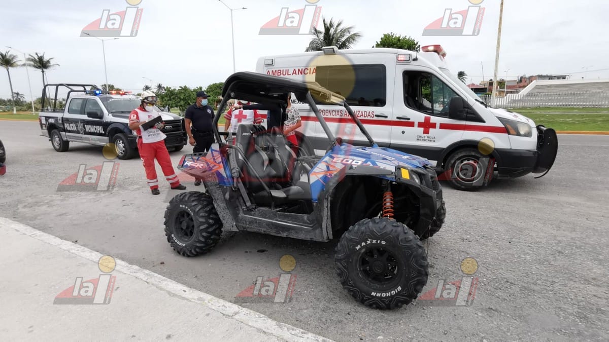 Fue alrededor de las 13:50 horas, cuando ciudadanos que se encontraban sobre la avenida Juan Camilo Mouriño de la colonia Playa Norte, reportaron a los números de emergencia la presencia de al menos 2 jóvenes a bordo de un vehículo “RZR” el cual había volcado sobre la arena de la pista de motocross.