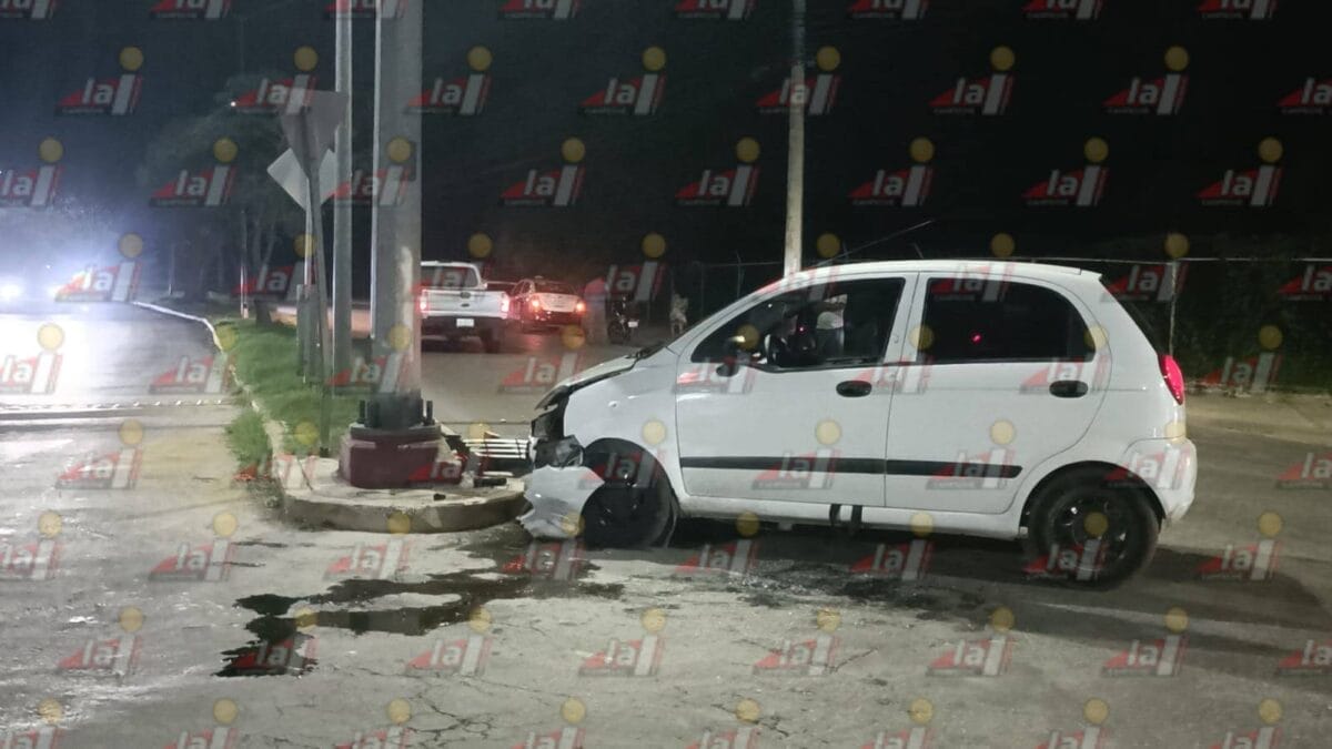 CAMPECHE.- En la madrugada de hoy, un hombre, en aparente estado de ebriedad, protagonizó un accidente al estrellar su vehículo contra la base de las cámaras del C5, ubicadas en la intersección de las avenidas Aviación y Concordia.