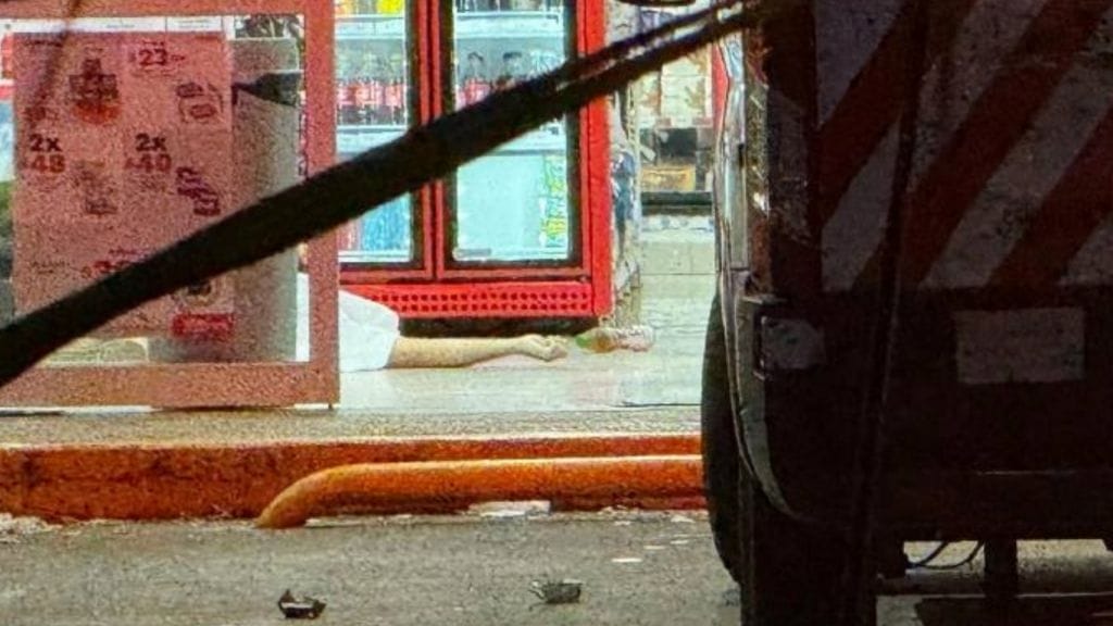 Uno de los hombres cayó al instante, desplomándose dentro de la entrada del comercio. El otro intentó escapar, pero solo logró avanzar unos metros antes de caer abatido sobre la banqueta.