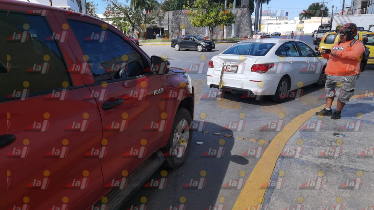 Por no respetar su distancia un vehículo causó un accidente en la zona Centro de Campeche luego de impactar a otro auto que realizaba su alto