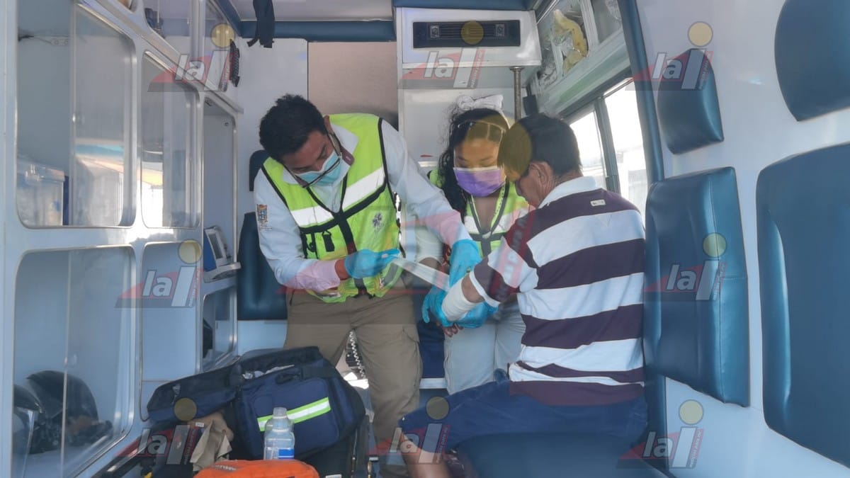 Llamaron al 911, aproximándose agentes de la Policía Estatal (PE) motorizados y de mujer valiente, ya que en un principio se informó que una mujer era la lesionada, descartándose dicha versión, por lo que paramédicos de la SAMU a bordo de la unidad 180, le brindaron los auxilios prehospitalarios al sujeto a quien le colocaron un vendaje para detenerle la hemorragia y poder ser trasladado a un hospital de la ciudad.
