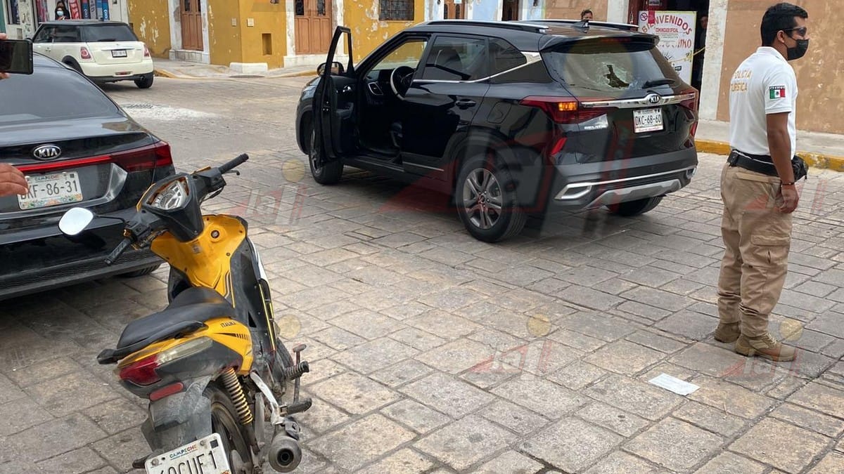 Luego de que una conductora estuviera a punto de causar un accidente en el centro de Campeche unos motociclistas le dieron alcance y entre la discusión uno de ellos rompió el medallón de auto