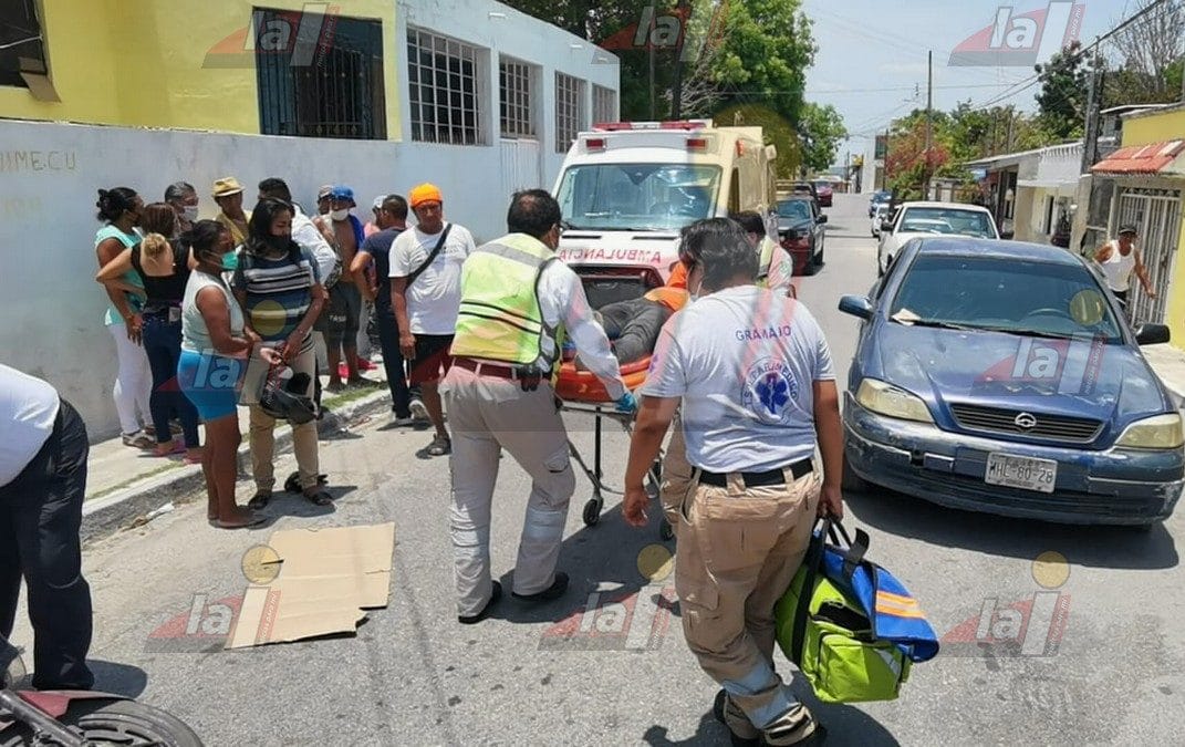 CAMPECHE.- Con fractura en la pierna derecha es como acabó el conductor de una motocicleta, luego de que se impactara de frente contra un vehículo con placas foráneas, cuyo conductor al estar estacionado e intentar incorporarse a su carril sin la debida precaución en calles de la colonia Bellavista, causó el corte de circulación al motorizado que circulaba a exceso de velocidad.