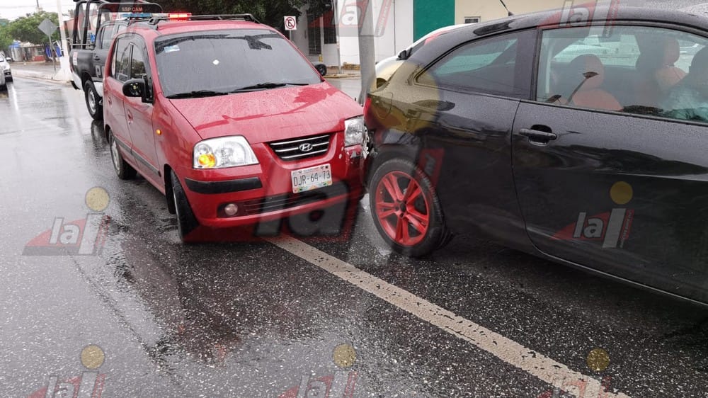 CAMPECHE.- Por no guardar su distancia de seguridad sumado a lo mojado del pavimento, conductor de un pequeño compacto protagonizó un accidente sobre la avenida Central, tomando conocimiento agentes de vialidad quienes abanderaron la circulación y pidieron a los involucrados moverse del lugar para liberar los carriles.