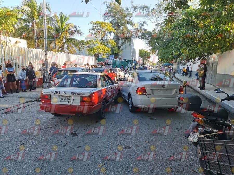 Los conductores iban circulando frente al IMSS de Carmen cuando la conductora de uno de los autos dio reversa e impactó al taxista