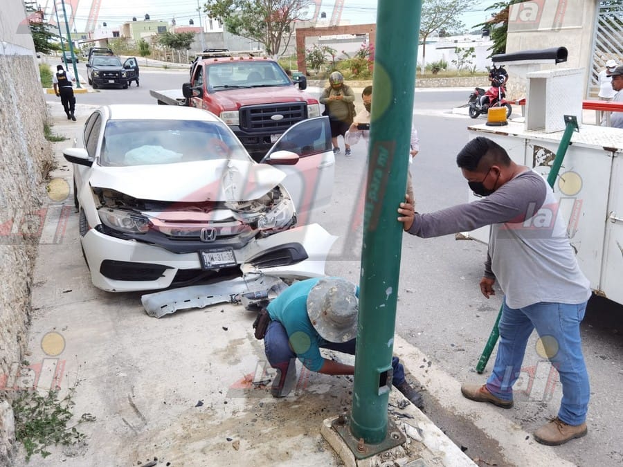 El hecho donde por fortuna no hubo personas lesionadas, ocurrió pasada las 9 de la mañana, cuando el conductor del automóvil marca Honda tipo Civic, blanco y con placas de circulación DJW-3138 del estado, se desplazaba sobre la avenida Ex Hacienda Kalá o Ramón Espínola Blanco, excediendo los límites de velocidad y con dirección hacia la unidad habitacional Colonial Campeche.