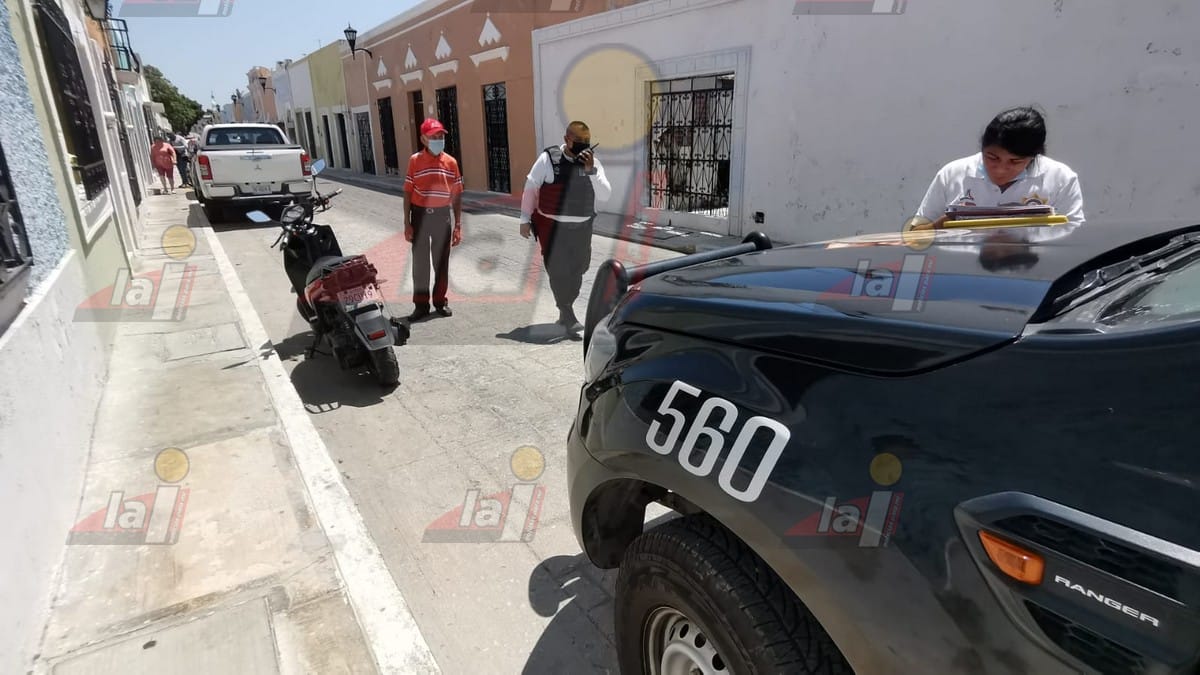 Lo anterior ocurrió poco antes de las 2 de la tarde, cuando propietarios de un predio situado en las calles 63 por 14 del Centro Histórico, marcaron al número de emergencia para reportar una motocicleta de la marca Italika tipo motoneta en colores negro con rojo y placas de circulación 29CUY9 del estado, apersonándose al lugar agentes turísticos los cuales pidieron a la central verificar la matrícula de la unidad.