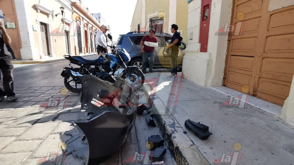 CAMPECHE.- De nueva cuenta se registró un fuerte accidente en la “esquina maldita”, lugar del Centro Histórico bautizado por conocido estilista de la ciudad, donde un motociclista resultó lesionado tras impactarse contra un vehículo con placas foráneas, cuyo conductor no se percató del señalamiento de alto que tenía en su carril, originando el accidente del cual tomó conocimiento agentes de vialidad.