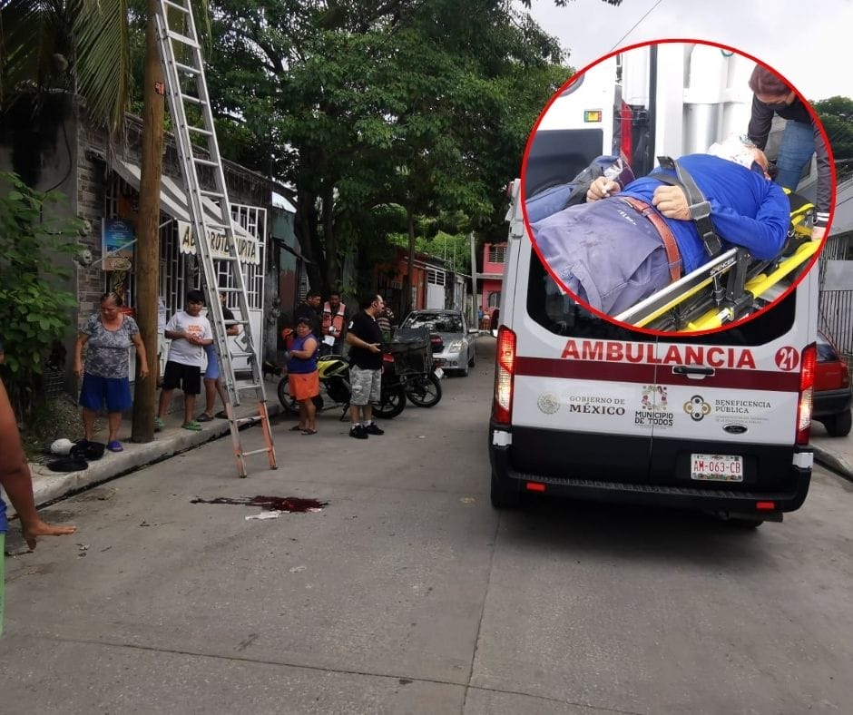 CIUDAD DEL CARMEN.- Un técnico, de aproximadamente 40 años de edad, fue trasladado de urgencia a un centro hospitalario tras caer de varios metros de altura desde una escalera cuando se encontraba reparando una línea de telefonía en la colonia Estrella.