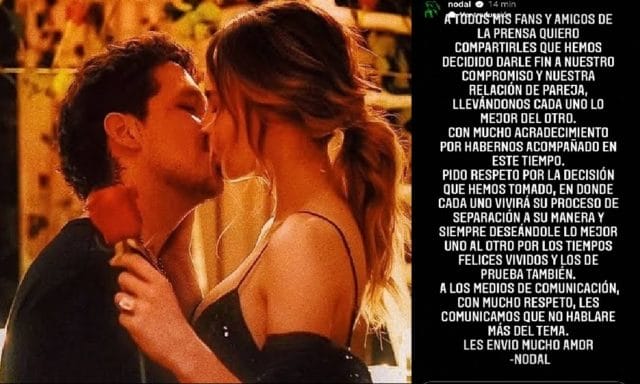 “A todos mis fans y amigos de la prensa, quiero compartirles que hemos decidido darle fin a nuestro compromiso y nuestra relación de pareja, llevándonos cada uno lo mejor del otro con mucho agradecimiento por habernos acompañado en este tiempo”, escribió en una historia de Instagram.