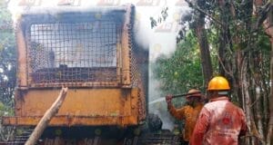 Maquinaria se incendió en una parcela en la Akil-Oxkutzcab