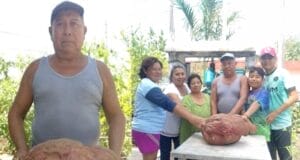 Don Vicente cosechó el camote más grande de Dzidzantún