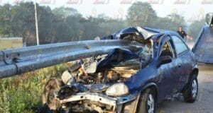 Auto chocó contra el muro de contención en la Mérida-Cancún