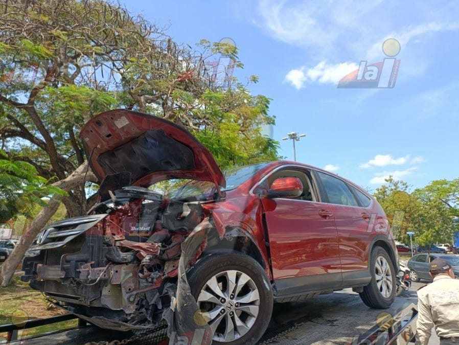 Eran cerca de las 12 del día, la mujer, de unos 50 años de edad, conducía una camioneta CR-V por la avenida Circuito Colonias, llegó a la glorieta ubicada en el cruce con la avenida Prolongación de Paseo de Montejo, se incorporó a ella, sin embargo, cuando realizó la maniobra para salir chocó la parte frontal de su camioneta contra una esquina del muro de contención.