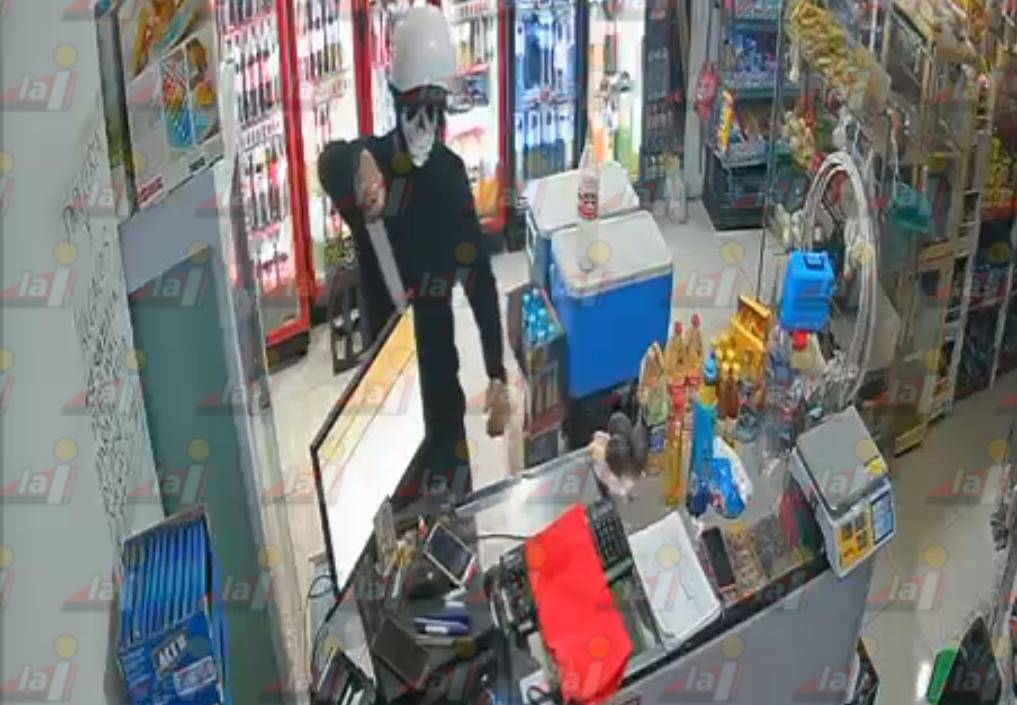 Delincuente con máscara de calavera amenazó a la encargada de tienda de abarrotes y huyó con el dinero de la jornada