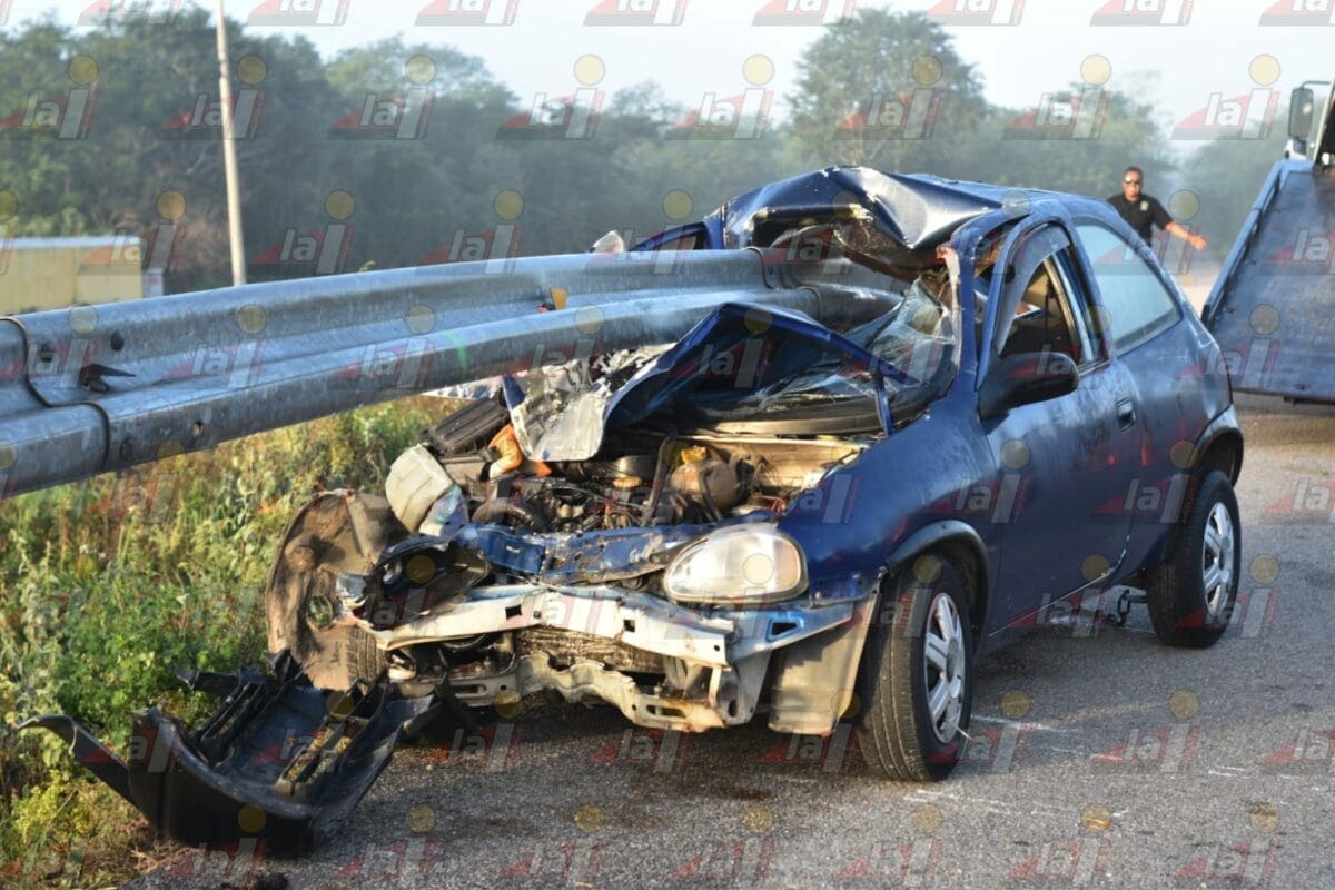 SEYÉ.- Tres jóvenes lesionados, entre ellos un menor de edad, fue el saldo de un fuerte accidente en la Mérida-Cancún, donde el auto en el que iban chocó contra el muro de contención.