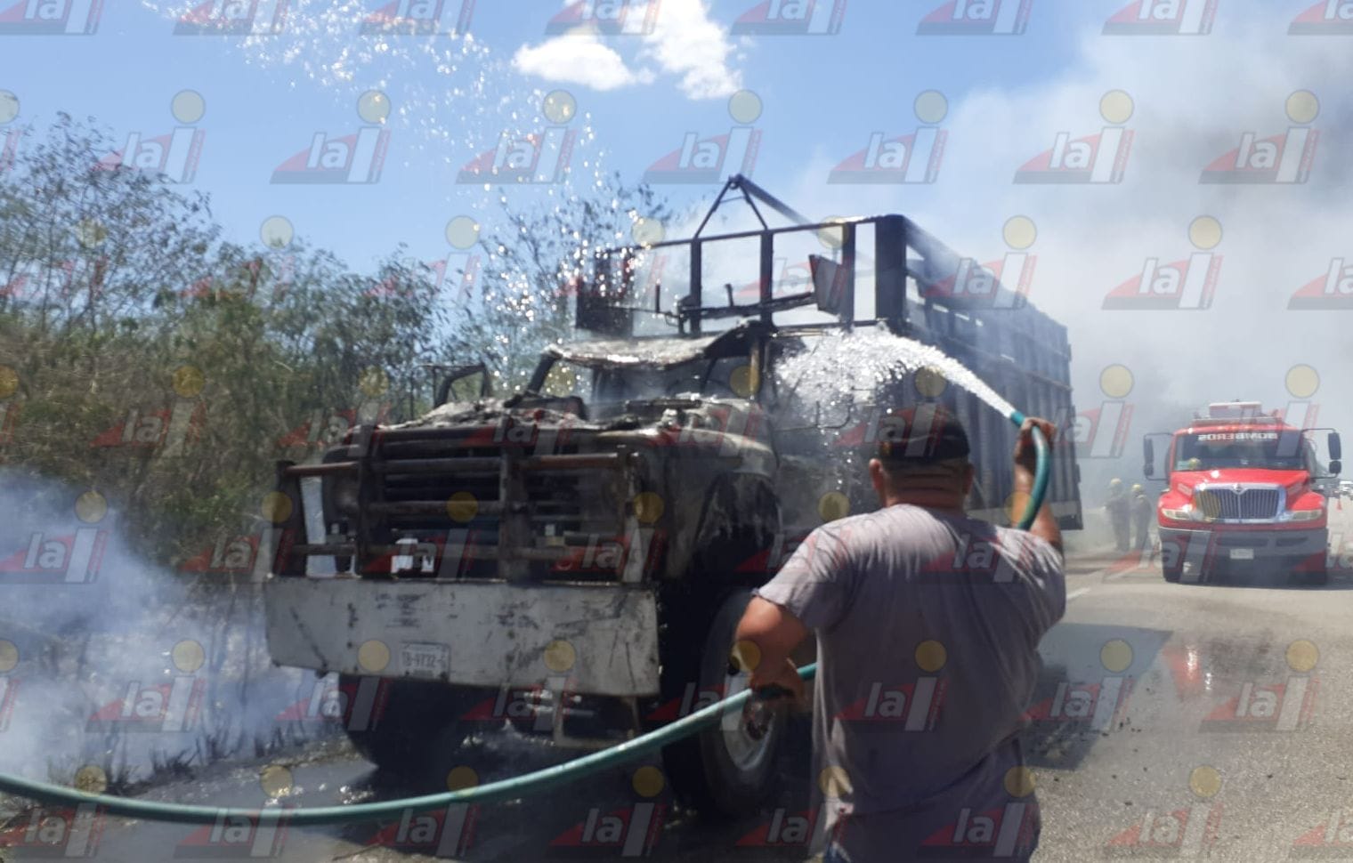 Mientras circulaba por el tramo Baca-Motul, esta tarde se incendió una camión. ¡Conductores pidieron ayuda!
