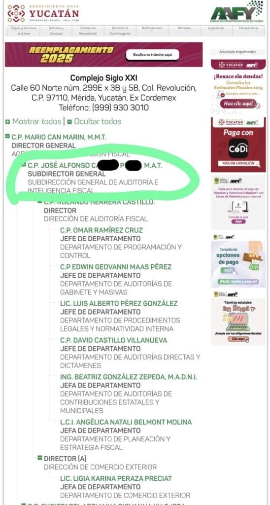 En medio del escándalo, el nombre de José Alfonso C. P. ya no figura en el directorio oficial del Gobierno del Estado. El cargo que ostentaba aparece actualmente como vacante.