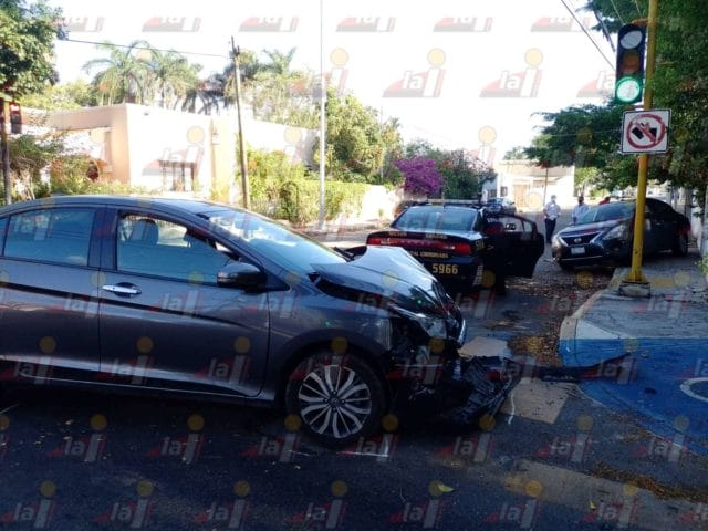 MÉRIDA.- Por una confusión con el semáforo peatonal, un joven protagonizó un choque en calles de la García Ginerés.