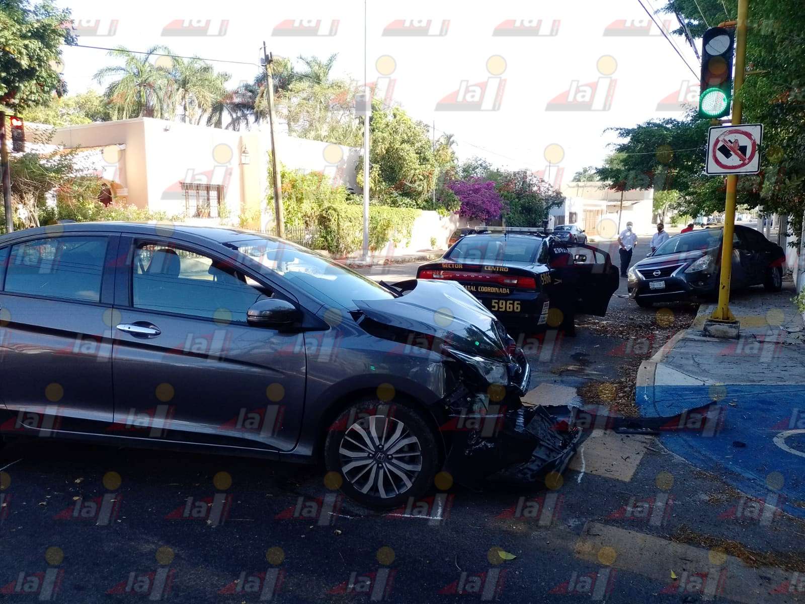 Sin embargo, no se percató que la luz correspondía al semáforo peatonal, por lo que no frenó y al cruzar chocó contra el costado de un Versa. Debido al fuerte impacto, el Versa giro cómo trompo hasta parar en la acera de costado.