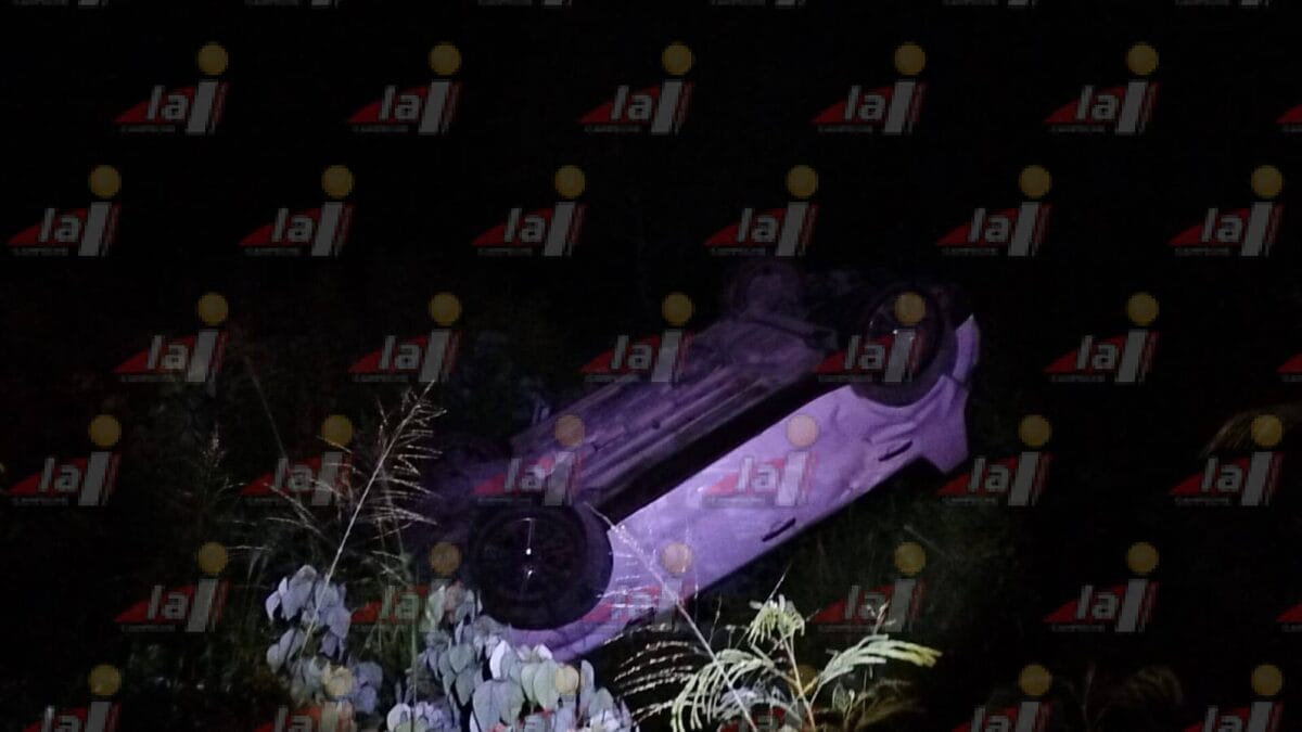 Por rebasar intempestivamente a una camioneta, un automóvil compacto terminó volcado, con saldo de cuatro jóvenes lesionados