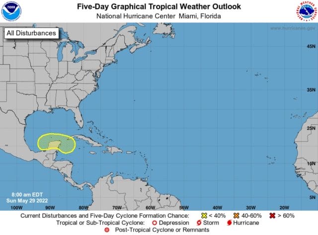 Esta mañana se reportó la posibilidad de un desarrollo ciclónico cerca de la península de Yucatán.