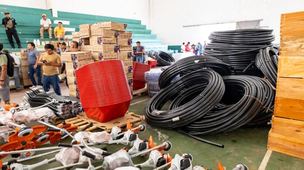 Durante el acto se informó que se distribuyeron un total de 3,085 herramientas e insumos para beneficio de 111 productores, con una inversión que supera los dos millones de pesos. En la ceremonia también estuvieron presentes regidores del Cabildo, entre ellos Víctor Caamal Chuc, así como funcionarios municipales de comisarías y fomento agropecuario.