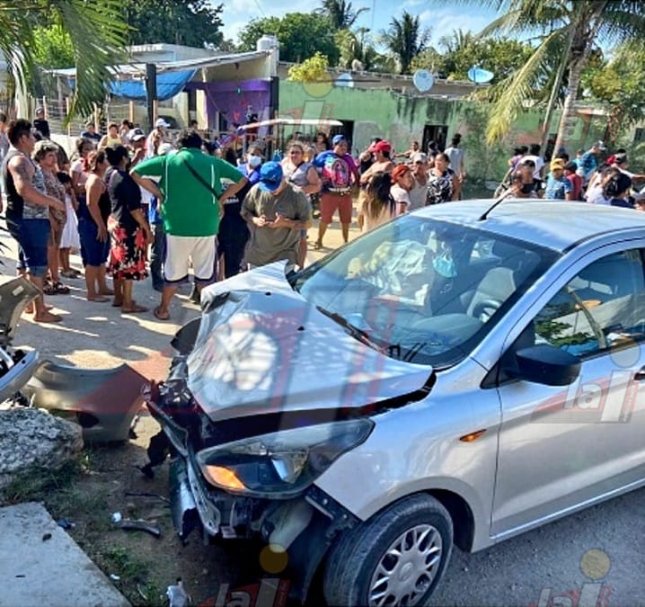 El fatal percance ocurrió en la esquina de las calles 8 y 19 de este puerto, cuando José Landero M., de 42 años, circulaba en su automóvil y embistió a la motocicleta al mando de Juan Antonio Canul Balam, de 20 años, y quien llevaba como pasajera a su mamá María Balam Novelo.