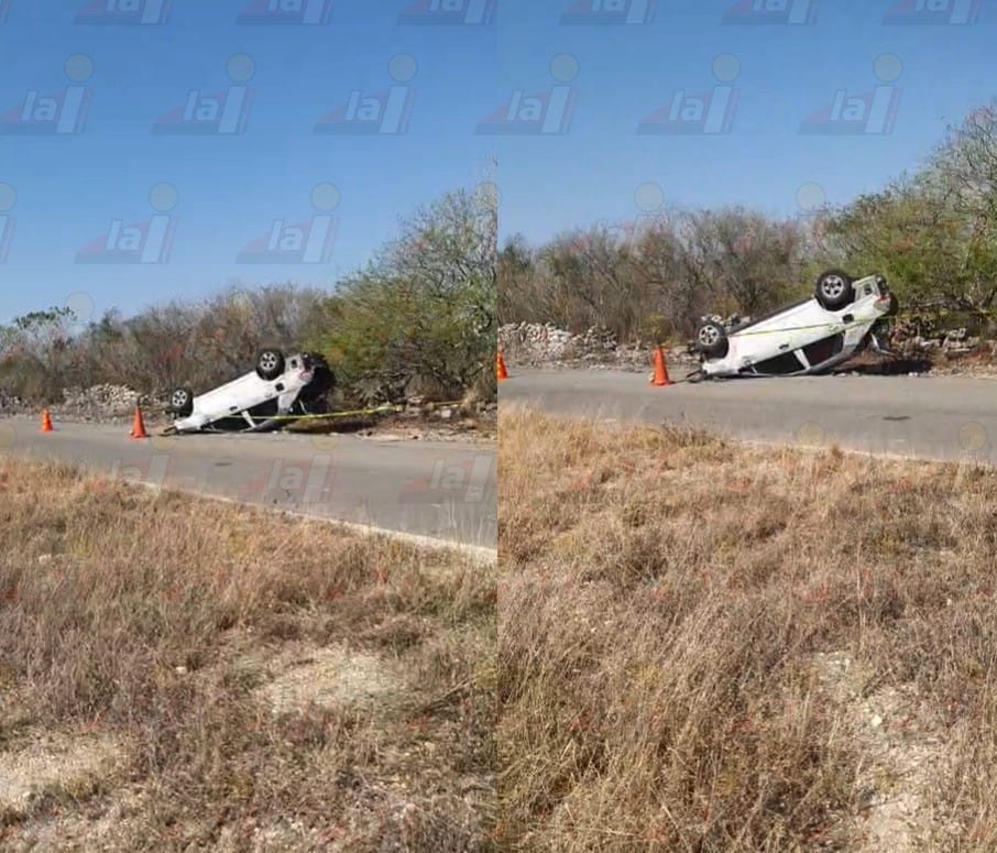 Fuerte susto pasaron dos jóvenes al transitar por la vía Dzidzantún-Santa Clara, al sufrir una volcadura. ¡Salieron ilesos del accidente!