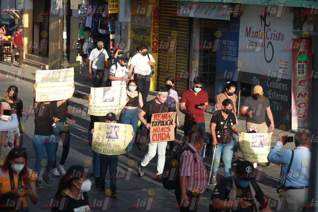 MÉRIDA.- A casi un año del fallecimiento de José Eduardo Ravelo Echevarría, su madre, Dora María Ravelo Echeverría encabezó una marcha pacífica del parque de San Cristóbal al Palacio Municipal para exigirle al alcalde Renán Barrera Concha una disculpa pública.