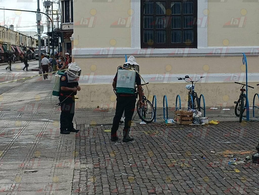 Minutos después un par de trabajadores de la comuna meridana se llevó los botes de basura y los bomberos se retiraron del lugar. La policía retiró las cintas amarillas y las personas volvieron a caminar libremente por esa zona peatonal