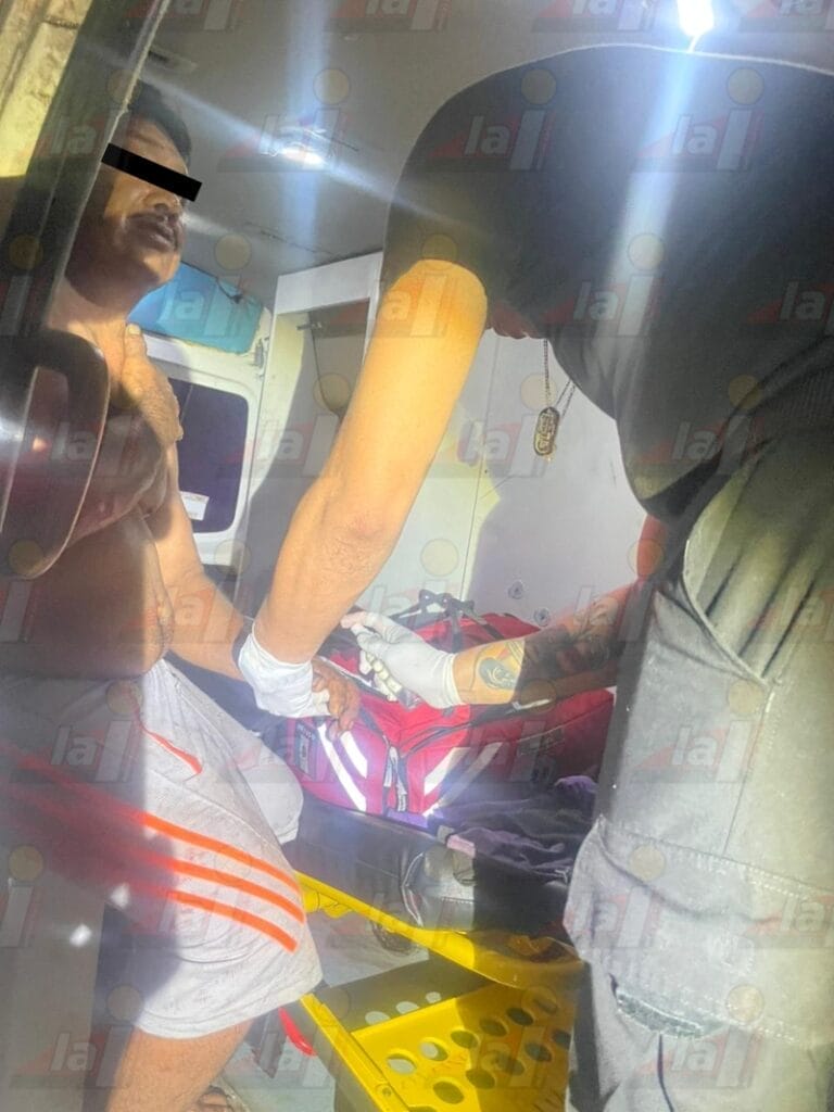 Al sitio arribó una ambulancia de la misma instancia, Delta-02. Por su parte, el lesionado se identificó como Julián J.M. de 50 años de edad, quien presentó heridas en manos y brazos. Este explicó que cuando iba por la vía mencionada hacia al poniente adelante una camioneta estaquitas Nissan blanca no tenía sujetada bien su carga de huacales.