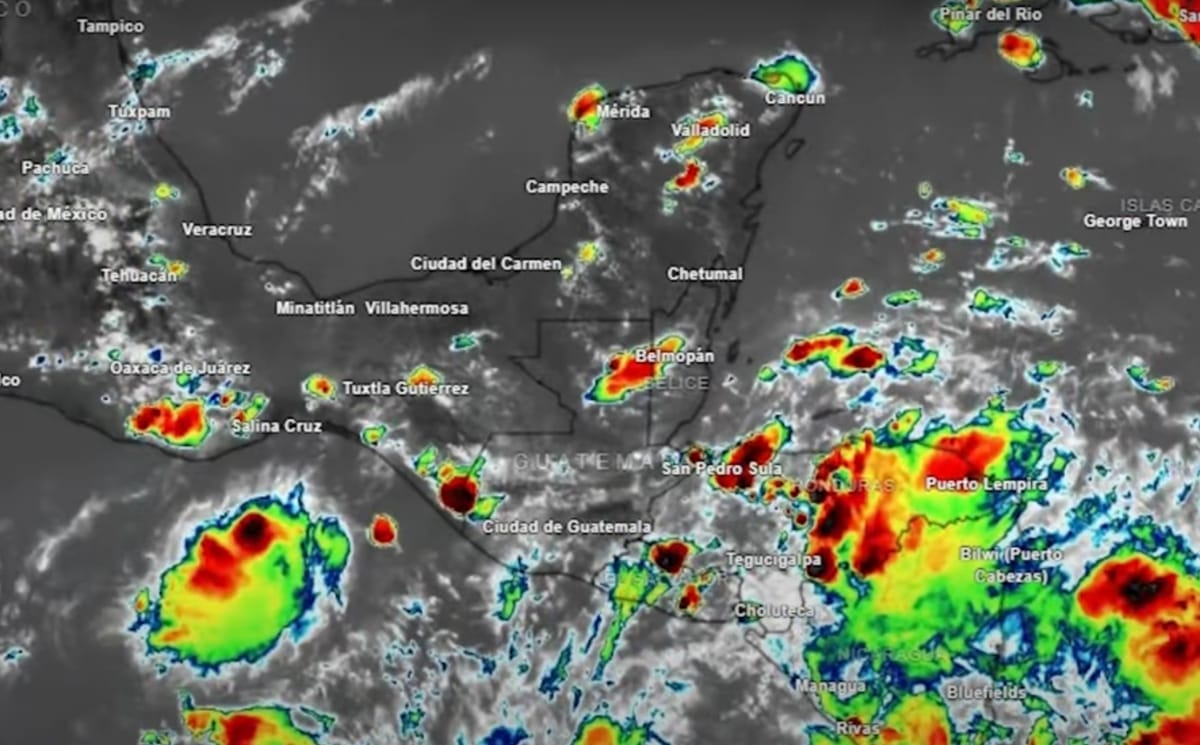 Desde el martes, se esperan chubascos en la mañana para Quintana Roo, y tormentas más intensas en Yucatán y Campeche a partir del mediodía. Estas precipitaciones estarán acompañadas de actividad eléctrica, ráfagas de viento (turbonadas) e incluso granizo de manera aislada.