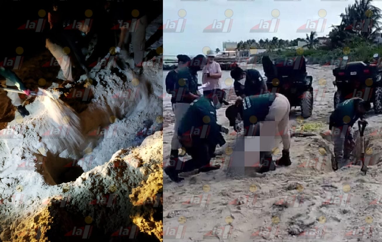 Posteriormente, uniformados pusieron manos a la obra y procedieron a sepultar el animal en la arena.