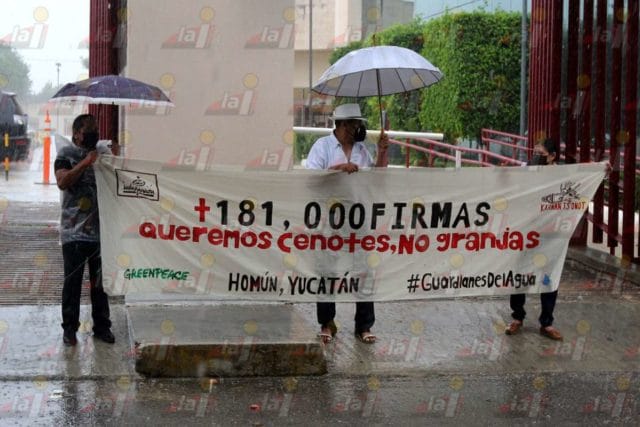A través de un comunicado emitido por las instancias ya señaladas, se explicó que previo a que el Juez Segando de Distrito, Rogelio Leal Mota, decida si retira la suspensión que tiene paralizadas las operaciones de la mega granja porcícola de la empresa Producción Alimentaria y Porcicola (PAPO), aparcera de Grupo Porcicola Mexicano (Kekén), integranes de Kanan Ts’ono´ot (Guardianes de los Cenotes), y representantes de la infancia de Homún junto con Greenpeace México e Indignación, entregaron más de 181 mil firmas recabadas en una plataforma digital contra las afectaciones de las fábricas de cerdos y en defensa de los cenotes y la selva maya.