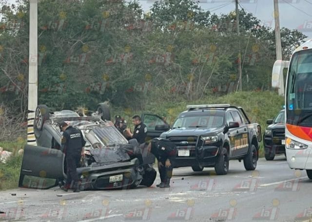 Esta mañana se registró una volcadura en la vía Mérida-Cancún que, para fortuna, no dejó lesionados.