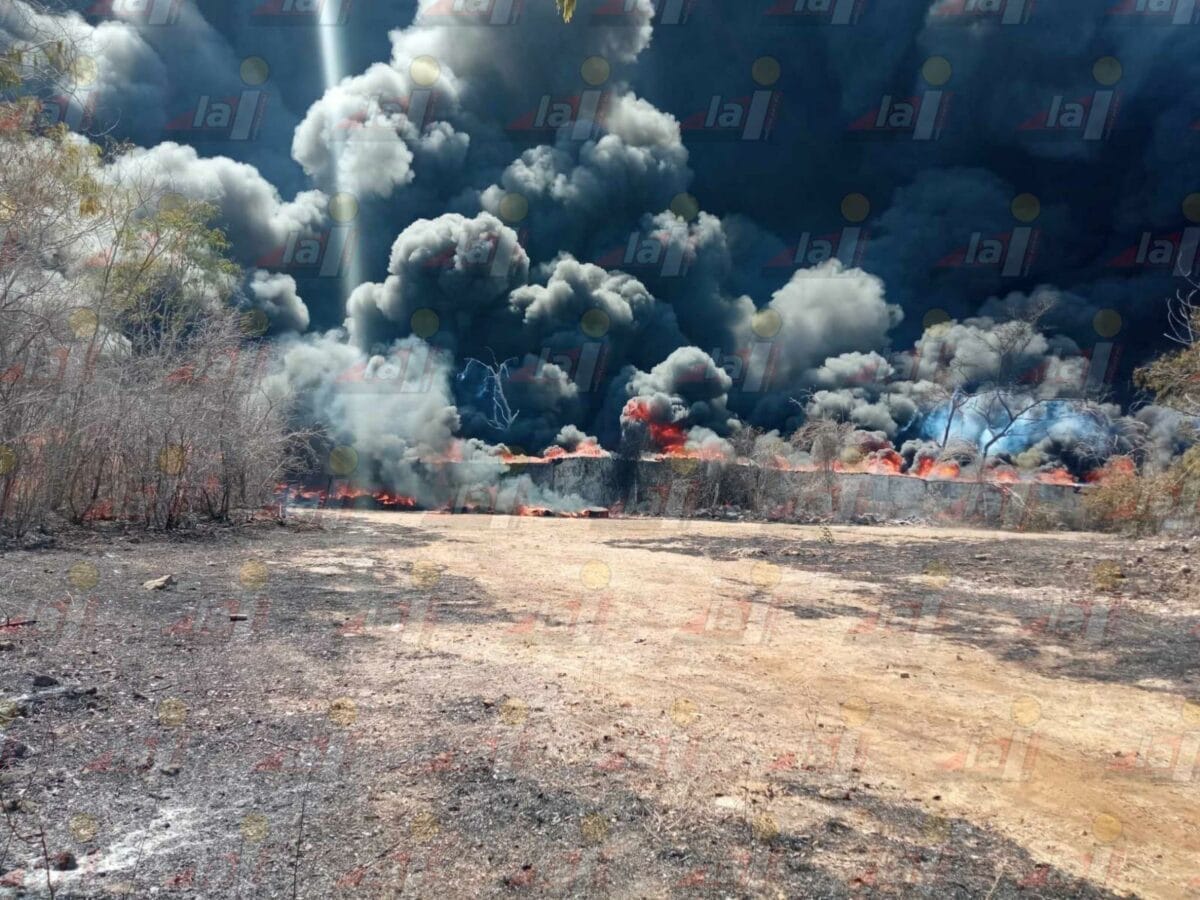 Este lunes se reportó un intenso incendio en el municipio de Kinchil. ¡Arrasó con miles de llantas de tractor y camiones!